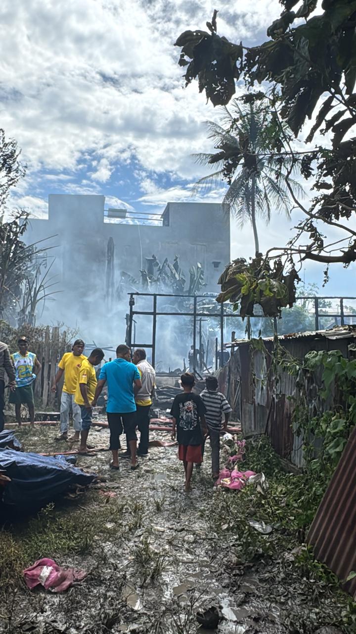 TERBAKAR : Inilah rumah milik Yanto David Son Mooy yang terbakar, Jumat (27/3/2026) siang. ATAMBUA,…