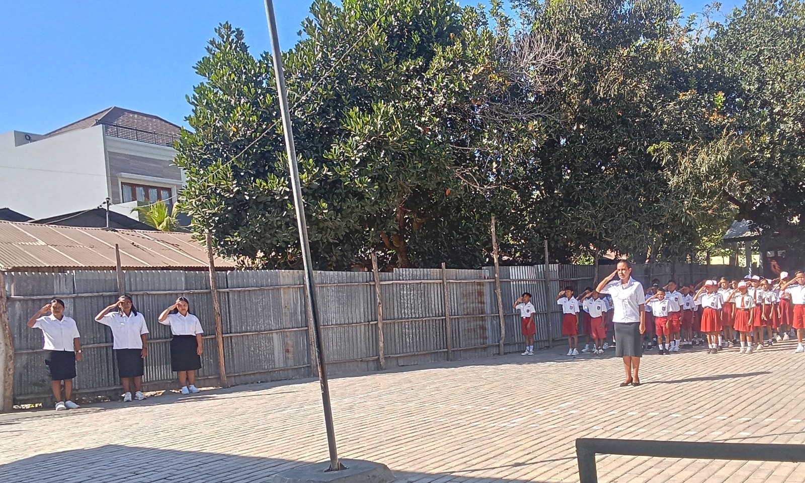 “Petugas upacara bukan para murid, melainkan para guru yang dengan penuh tanggung jawab mengisi setiap bagian prosesi. Meski sederhana, suasana terasa khidmat dan tenang,” tambahnya.