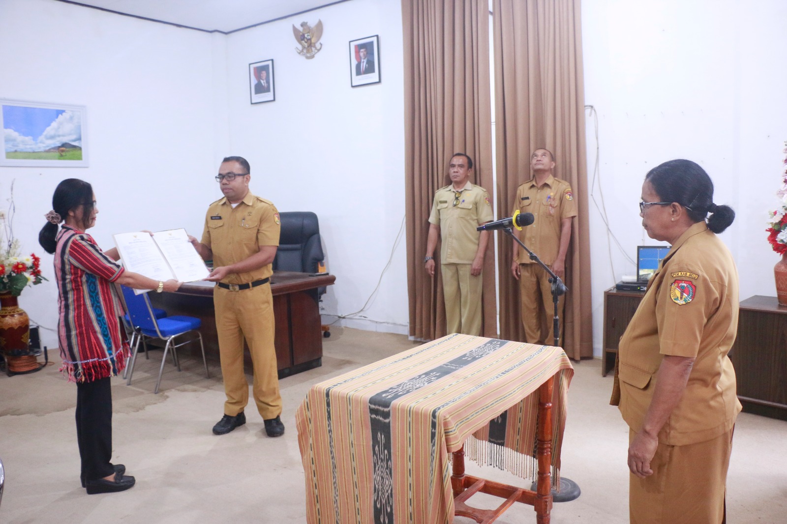 Kegiatan ini menandai pengalihan tugas dan tanggung jawab dari pejabat lama, Maria Imelda Haki, S.Pt kepada pejabat baru sebagai penerima Surat Perintah dari Bupati Belu, Martinus Mau Mantus, S.STP