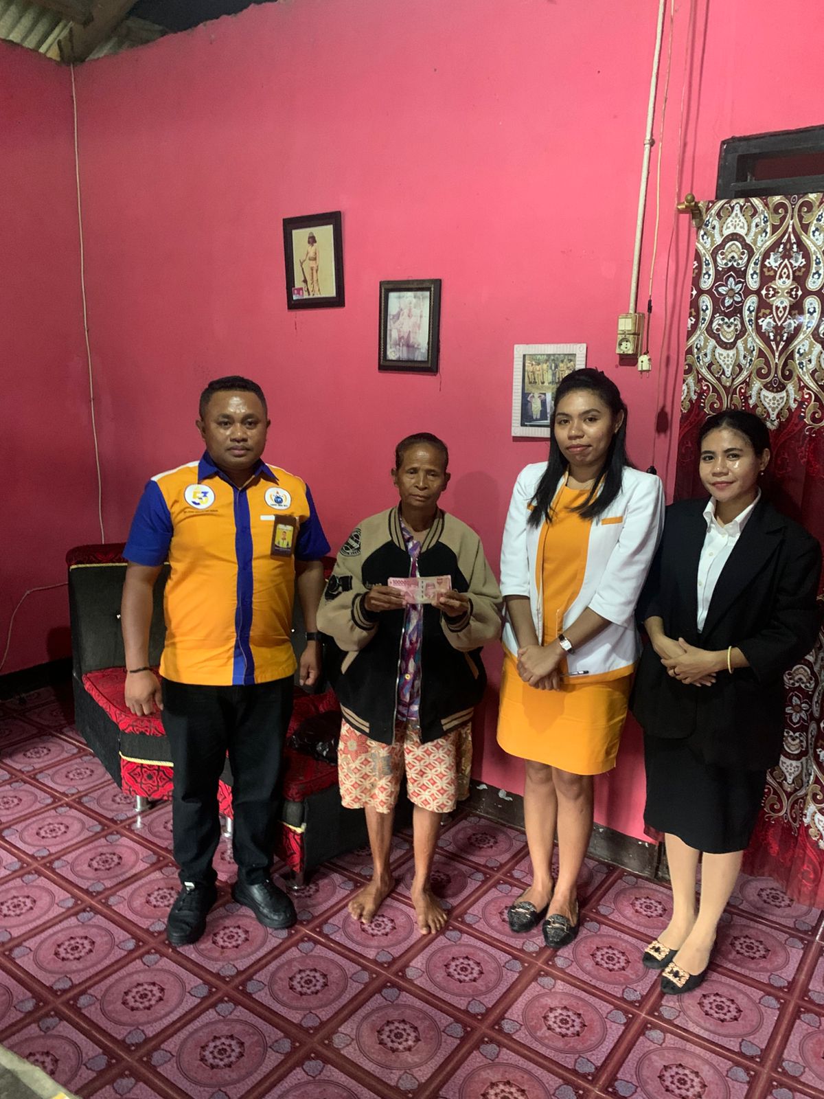Santunan kepada anggota yang berprofesi sebagai petani yang berdomisili di RT 001, RW 001 dusun Besakren, Kecamatan Lasiolat, Kabupaten Belu perbatasan RI-RDTL senilai Rp 11 juta.