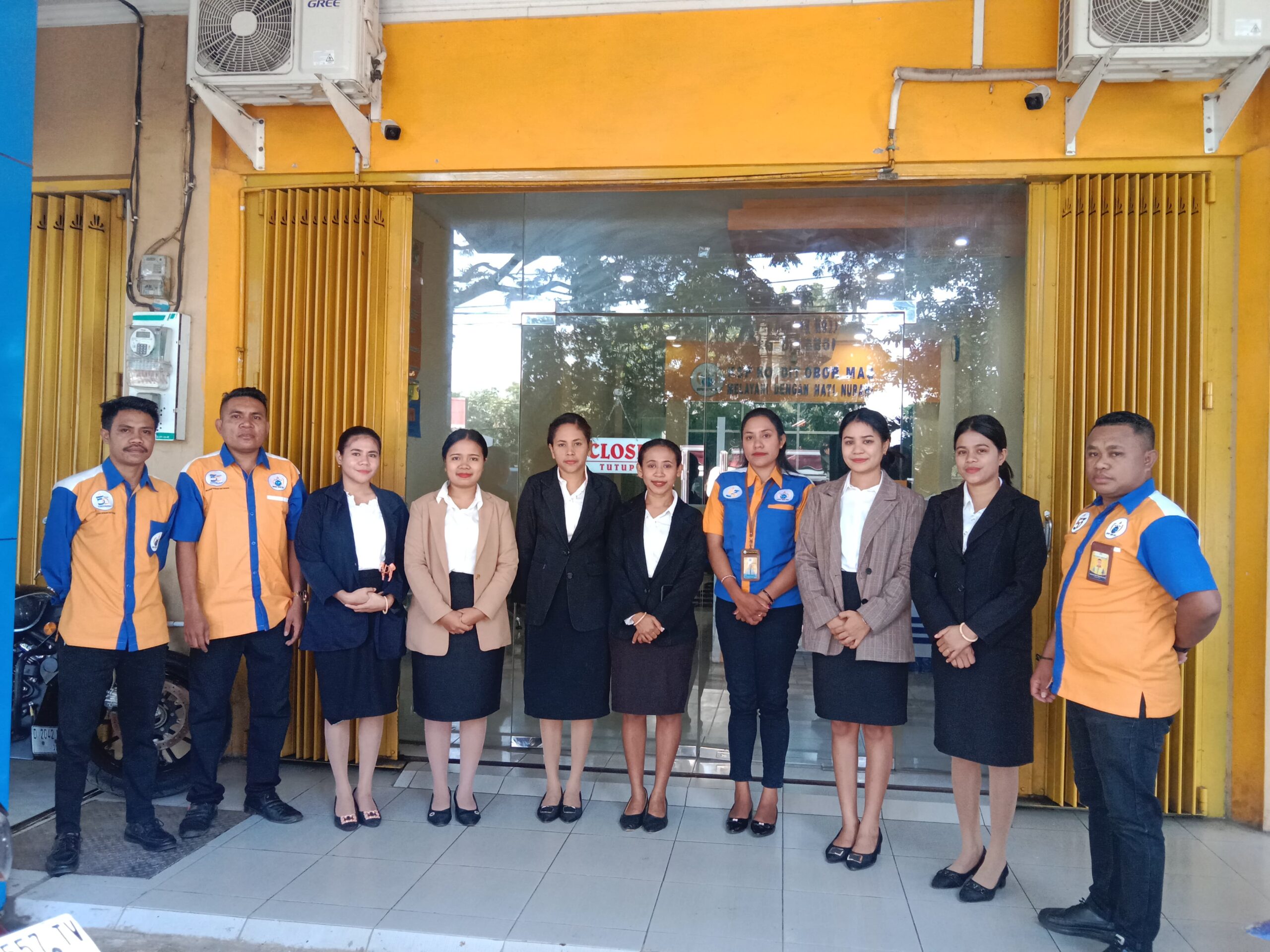 Kepala KSP Obor Mas Cabang Atambua, Herman Yosef (Kiri) bersama staf pose bersama ahli waris di Lasiolat.
