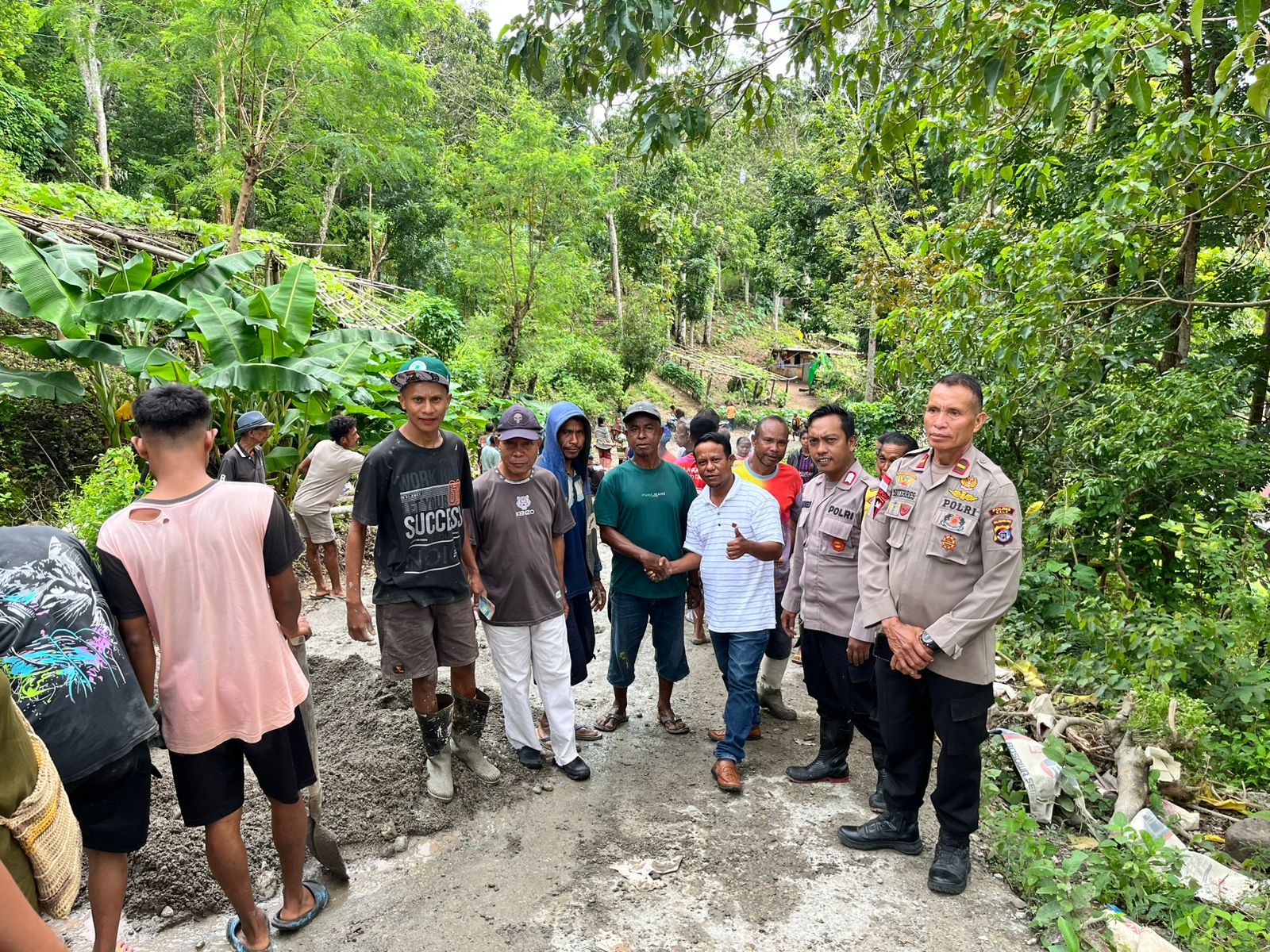 Anggota DPRD Belu, Engel Talok bersama masyarakat dan kepolisian gotong royong rabat jalan di batas Desa Tohe Leten dan Raifatus.